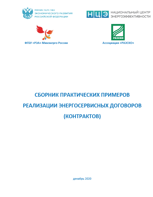 Минэкономразвития России совместно с Национальным центром энергоэффективности Минэкономразвития России, ФГБУ «РЭА» Минэнерго России и Ассоциацией энергосервисных компаний – «РАЭСКО» подготовлен сборник практических примеров реализации энергосервисных договоров (контрактов).