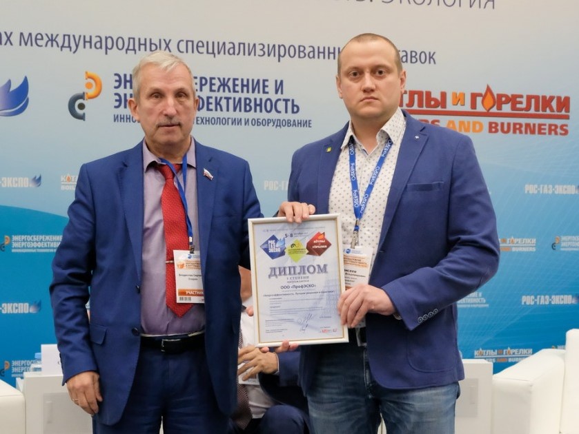 Торжественная церемония награждения победителей конкурсов состоялась во время работы Пленарной сессии Международного конгресса «Энергосбережение и энергоэффективность. IT технологии. Энергобезопасность. Экология». Диплом о победе в конкурсе вручили руководителю продаж энергоэффективных решений ООО «ПрофЭСКО» - Елисееву Владимиру (фото).