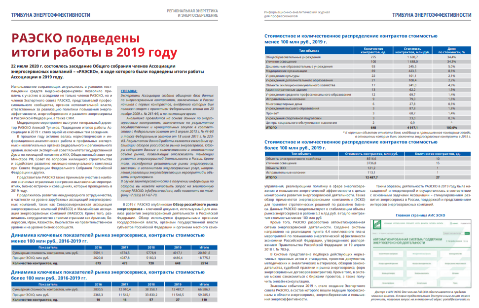 В новом номере журнала "Региональная энергетика и энергосбережение" опубликованы итоги работы Ассоциации энергосервисных компаний – «РАЭСКО» в 2019 году