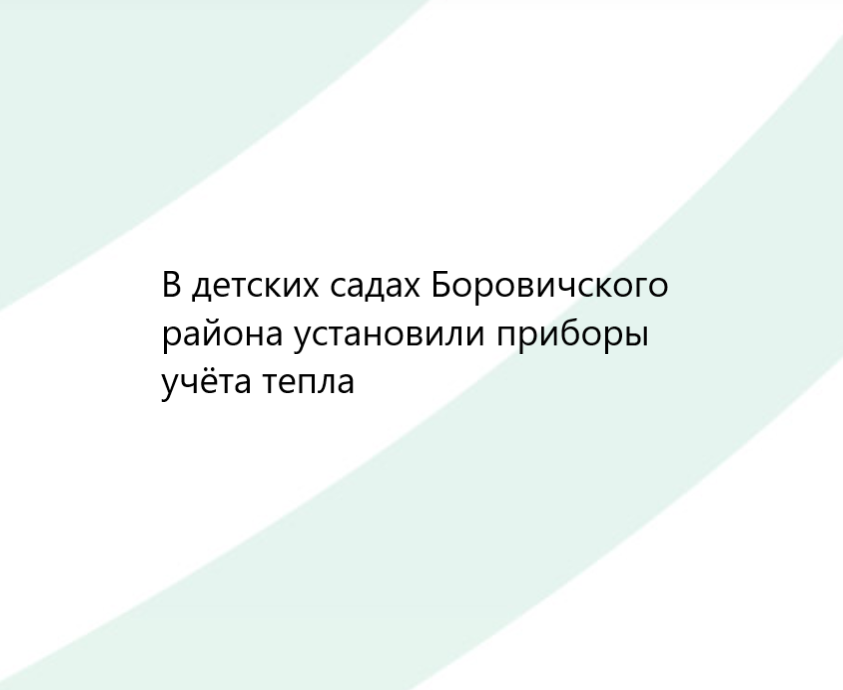В муниципальных учреждениях Боровичского района за месяц были установлены пять приборов учёта тепла. Они появились в детских садах №8 и №9, а также в спортзале детского сада в деревне Передки, в здании интерната и в здании дошкольного отделения в посёлке Тухун.